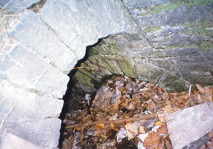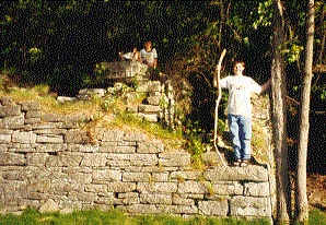 The site is very accessible and has much to interest a visitor. In the picture above my son David in the middle is sitting on a single stone block that is about 70 inches long, three feet wide and 14 inches thick. There is a subsurface passageway with well-made arches that might be part of the steam boiler system. This passageway is now filled in with leaves and dirt.