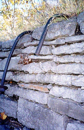 The site is very accessible and has much to interest a visitor. In the picture above my son David in the middle is sitting on a single stone block that is about 70 inches long, three feet wide and 14 inches thick. There is a subsurface passageway with well-made arches that might be part of the steam boiler system. This passageway is now filled in with leaves and dirt.